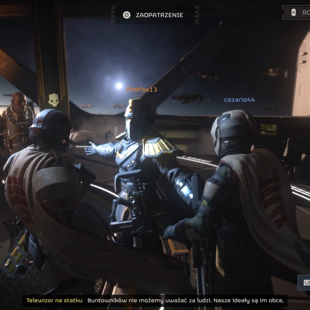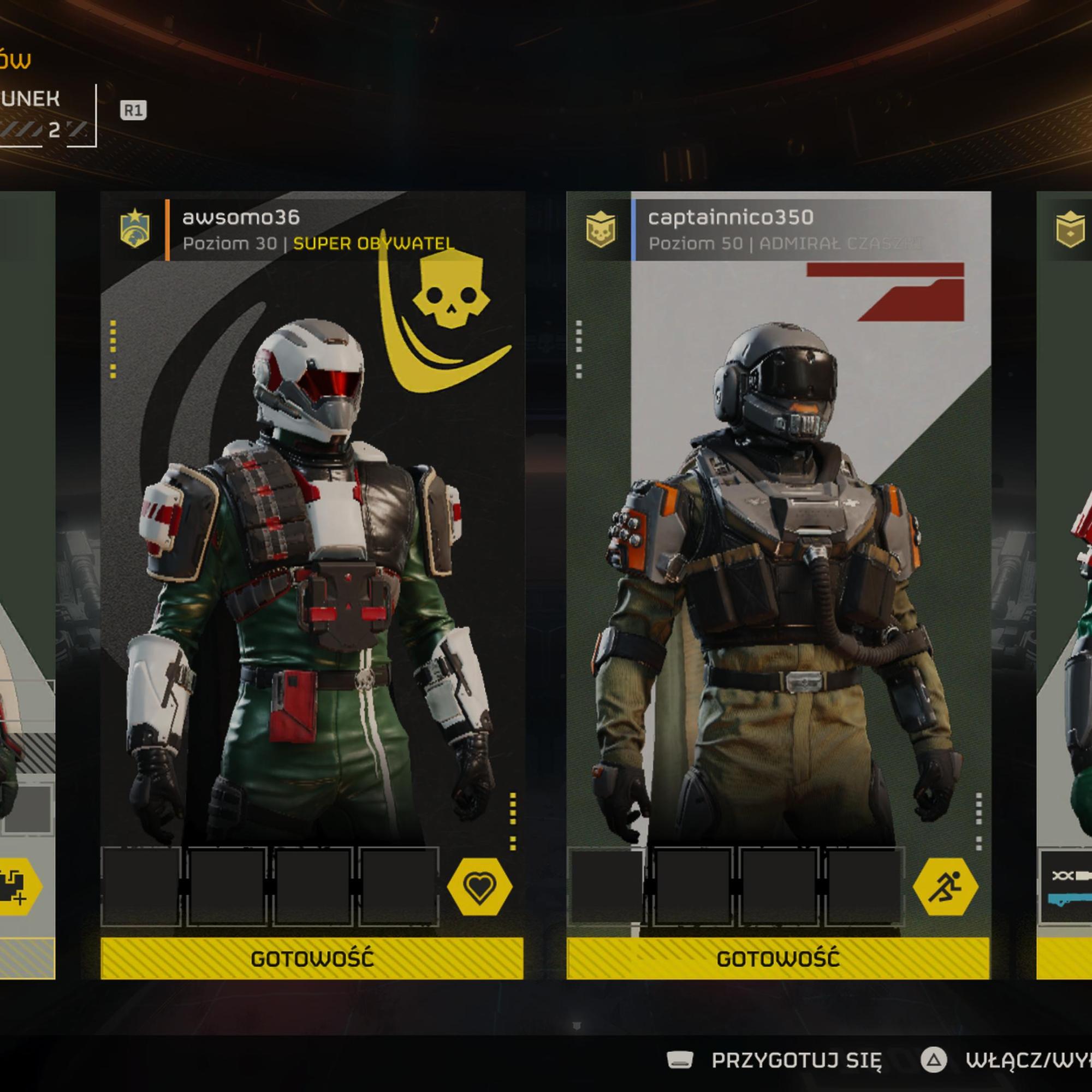 Po ukończeniu misji gra prezentuje nam ekran podsumowania, na którym wyszczególnione są różne aspekty misji i jak nam poszło. Zgodnie z nimi widzimy nasz wpływ na międzygalaktyczny konflikt całej społeczności, co samo w sobie jest przezabawne: kończymy misję na najtrudniejszym poziomie, ledwo uchodząc z życiem i gra komunikuje nam, że nasz wpływ na wspólny cel to 0,00001%. Każdy gracz ma swój statek domowy, w którym rozwija wsparcie przywoływane podczas misji oraz wykupuje nowe bronie, ubranka, czy akcesoria wizualne, jak pelerynki i emotki. Wszystkie te elementy wykupujemy za zbierane na misjach surowce lub fundusze za ukończenie misji. Surowce podzielono na kilka gatunków, a im lepsze usprawnienia chcemy wykupić, tym rzadsze surowce będą nam potrzebne, a te znajdują się na misjach o wyższym poziomie trudności. W ten sposób gra kieruje nas nieustannie, w co raz to trudniejsze misje, jeśli chcemy rozwijać nasz arsenał. Tym samym warto tu nadmienić dwa aspekty gry. Po pierwsze, lepsze spluwy kosztują więcej, a pensja na misje nie jest duża. Jednocześnie w grze funkcjonują mikrotransakcje, więc osoby wyciągające portfel, dojdą szybciej do lepszych broni. Natomiast, ponieważ korzyści nie są aż tak duże, a cała gra zbudowana jest na fundamencie PVE, nie uważam, aby to był wielki problem. Druga sprawa wynikająca z kierowania nas w stronę trudniejszych misji jest „prawie zupełnie nieunikniona” konieczność grania z innymi graczami. Misje solo od pewnego momentu, to zabawa dla masochistów. I znów, nie powiedziałbym, że to problem, albowiem moim zdaniem: grając w pojedynkę, bardzo dużo stracimy z magii Helldivers 2.