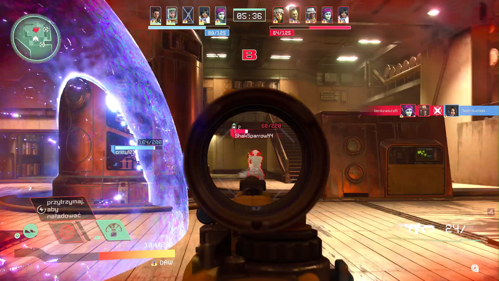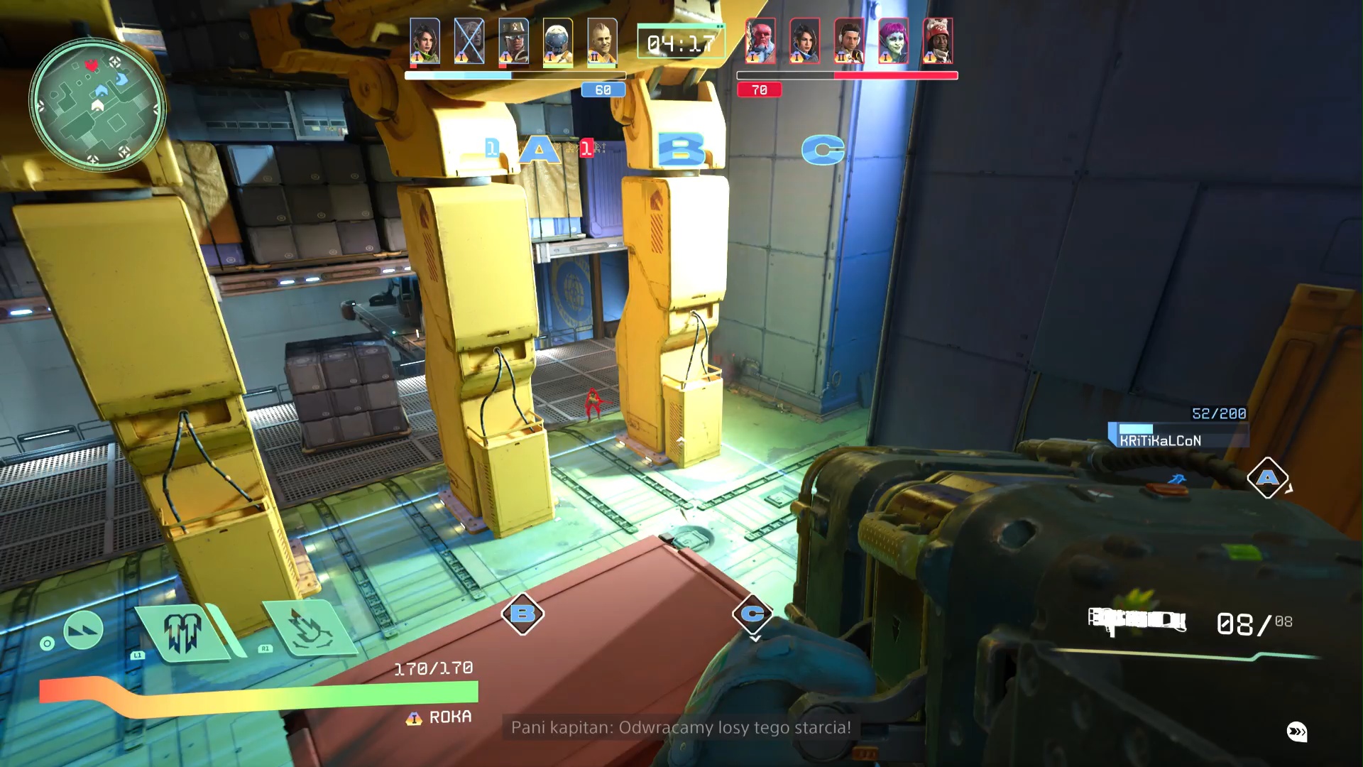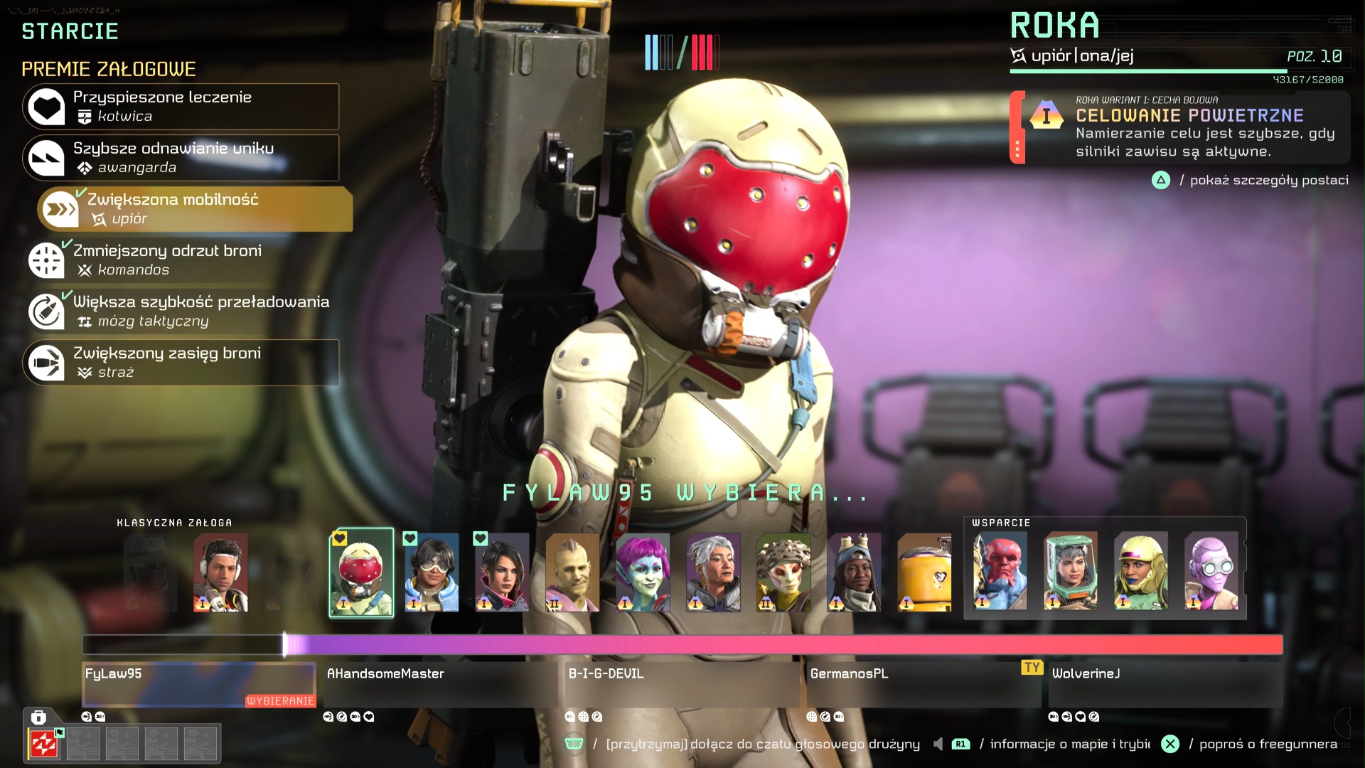 Warianty jak sama nazwa wskazuje, to inne wersje tego samego bohatera. Klasa się nie zmienia, ale każdy z wariantów ma swój wygląd (gra nie pozwala nam np. narzucić ten sam kolorek ubrania na dwa warianty) i cechę specjalną. Teo I otrzymuje kilkusekundowe przyspieszenia do poruszania się po każdym uniku, a Teo II zwiększony magazynek karabinu i dodatkowe granaty. Po co te warianty? Do tworzenia czegoś, co gra nazywa Załogą. To szesnaście miejsc, w które możemy włożyć kartę (tak jest to wizualnie reprezentowane) postaci lub wariantu, z których później będziemy mogli korzystać w zmaganiach online. Są jednak pewne ograniczenia narzucone przez twórców. W załodze musi być co najmniej określona liczba bohaterów, a także liczba wariantów danego bohatera nie może przekroczyć – bodajże – trzech. Istotne znów staje się to w Rywalizacji. Mówiłem już o utracie możliwości grania danych bohaterem po wygranej rundzie, aczkolwiek nie chodzi tu dokładnie o bohatera, a jego wariant. Zatem, jeśli zbudujemy sobie załogę z pięciu bohaterów, każdego w trzech wariantach, to moglibyśmy cały mecz Rywalizacji, rozegrać jako dwójka herosów – z czego jednym z nich zagralibyśmy aż trzy razy.