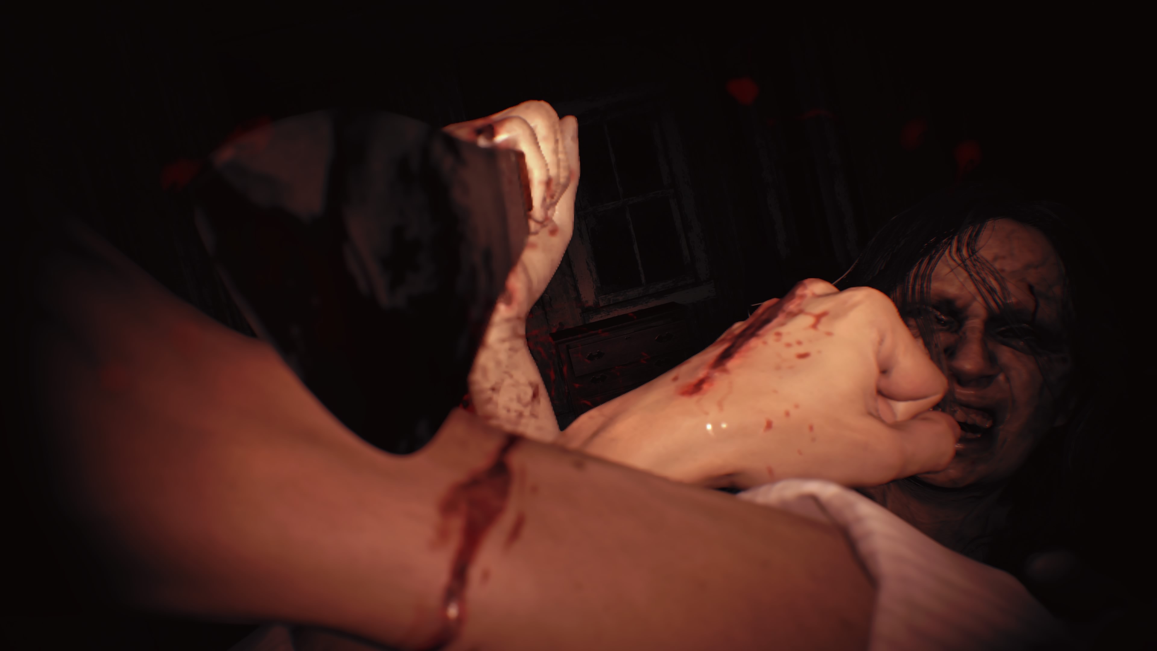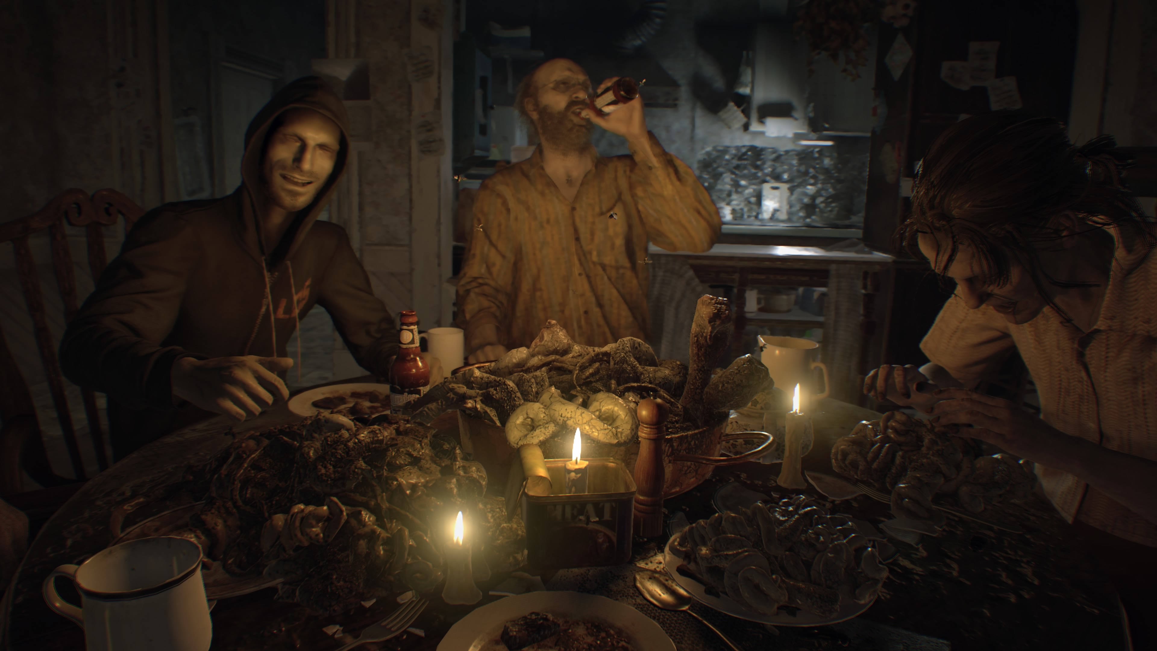 W trakcie tej sekwencji, która odbywała się w domku gościnnym (ja j… niezła gościna). Poznajemy w końcu pokręconą rodzinkę Bakerów, z piekła rodem, która będzie nam towarzyszyć (dosłownie i w przenośni) przez resztę gry.