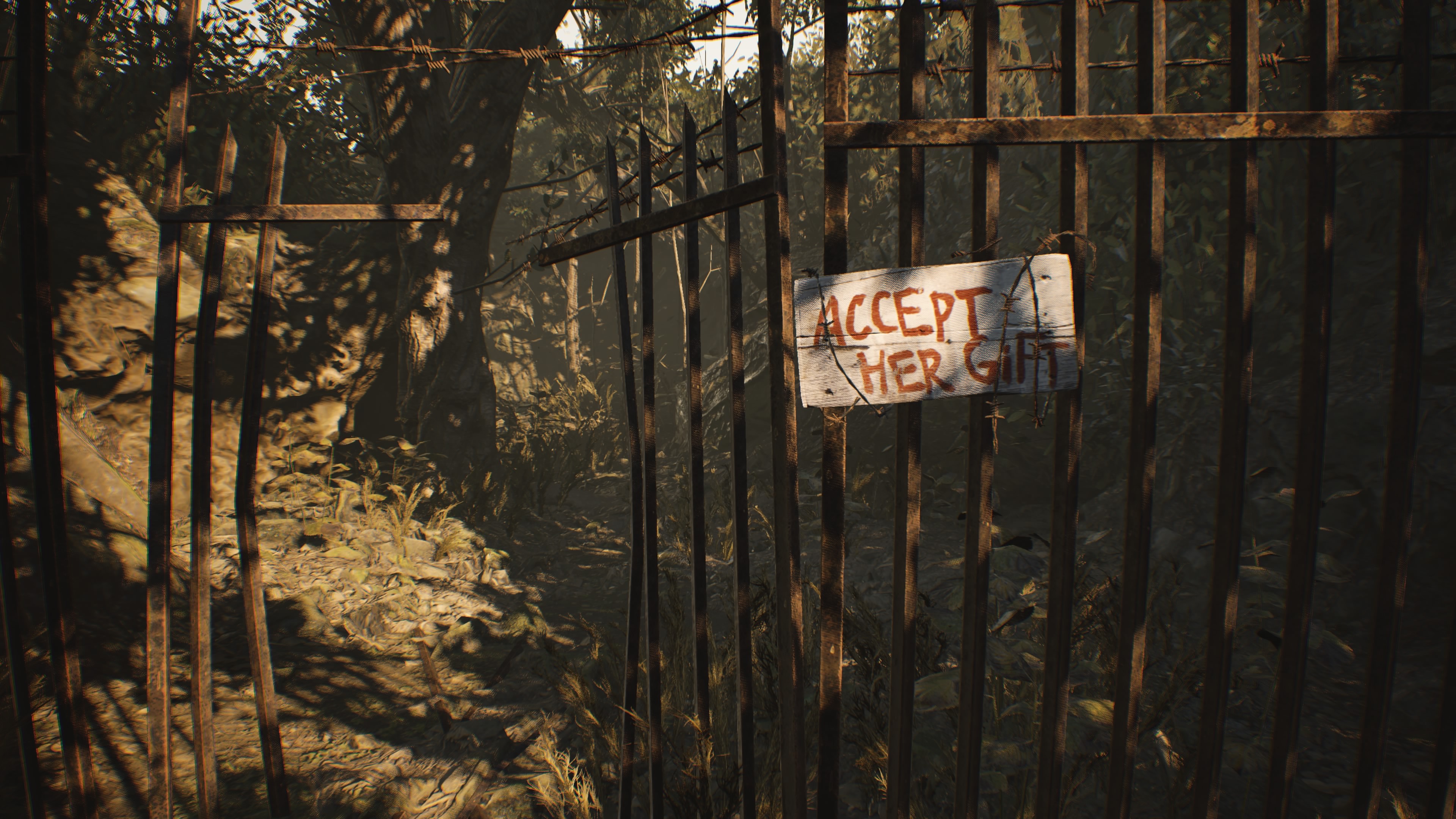 Pierwotnej lokacji towarzyszy wieczorna pora dnia, widać światłocienie, pomarańczowo-brązowawy kolor wszystkiego, co nas otacza, a w szczególności drogi do farmy, gdzie ma być zamknięta nasza żona.