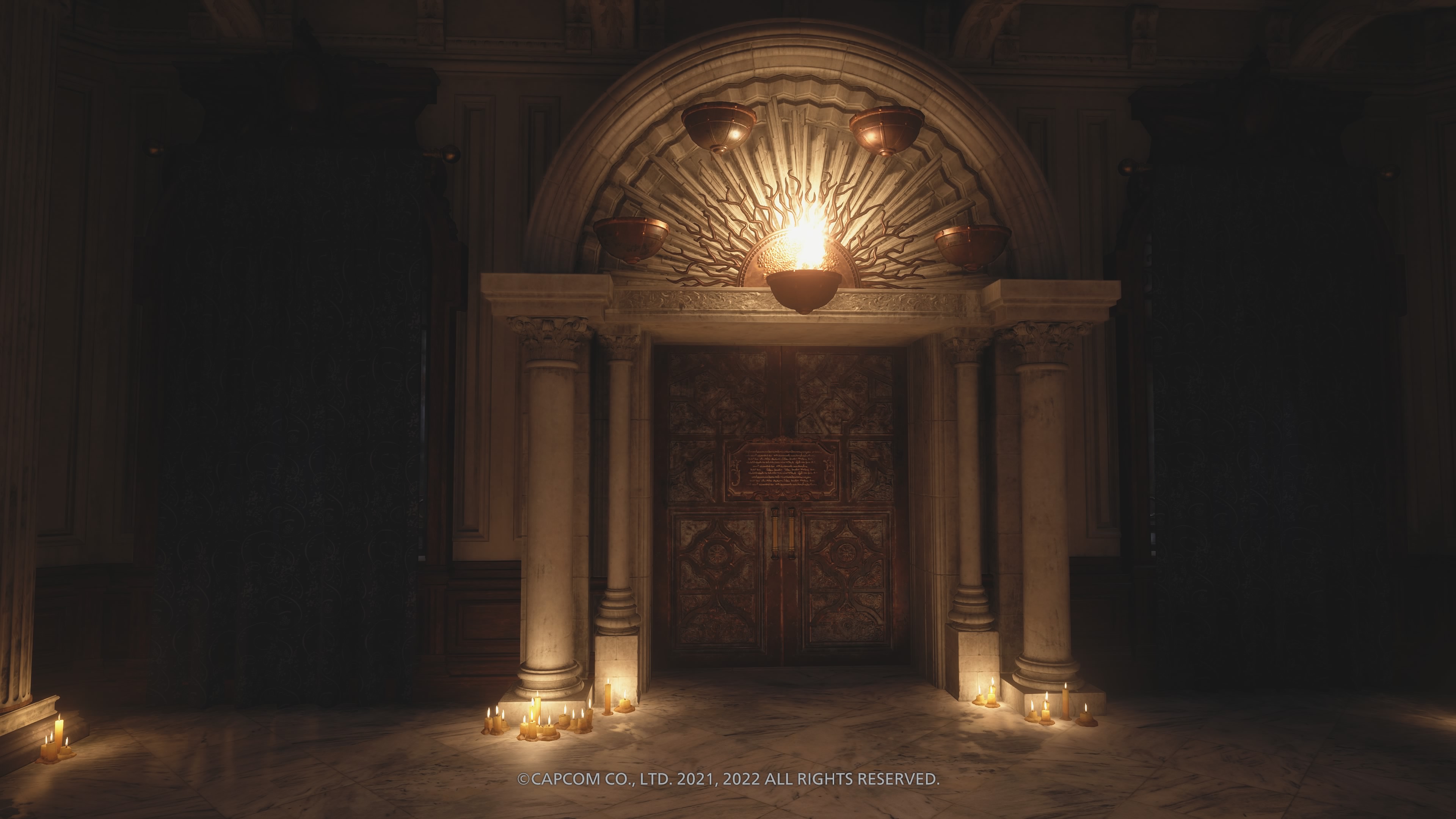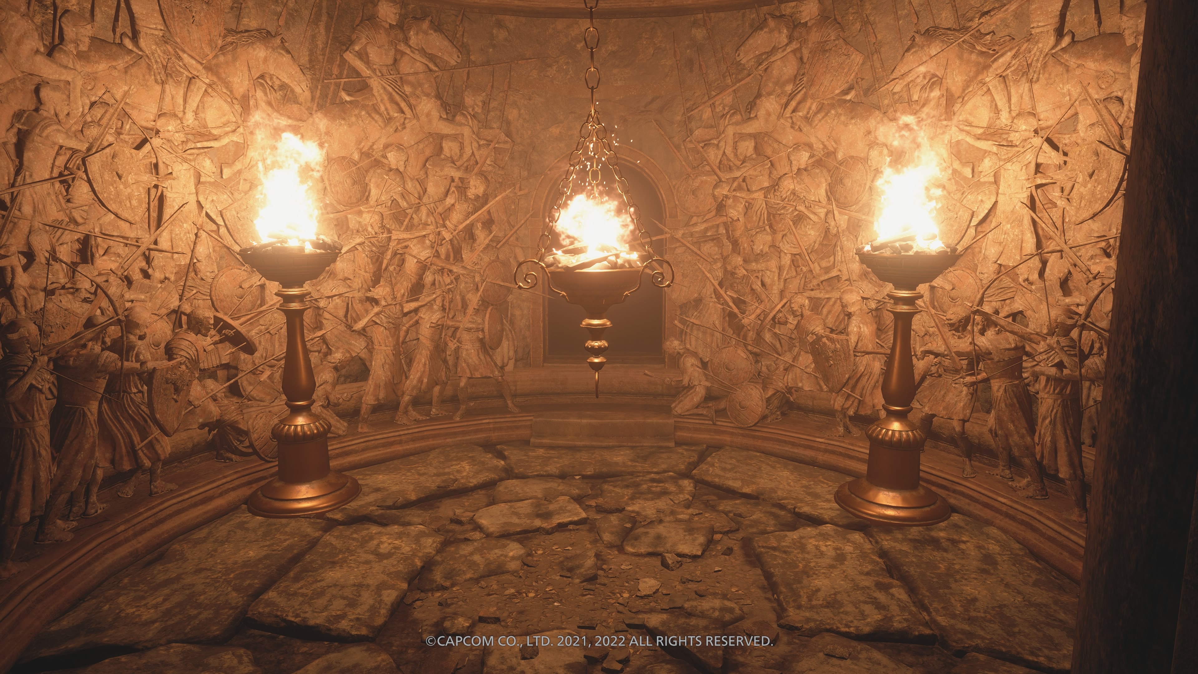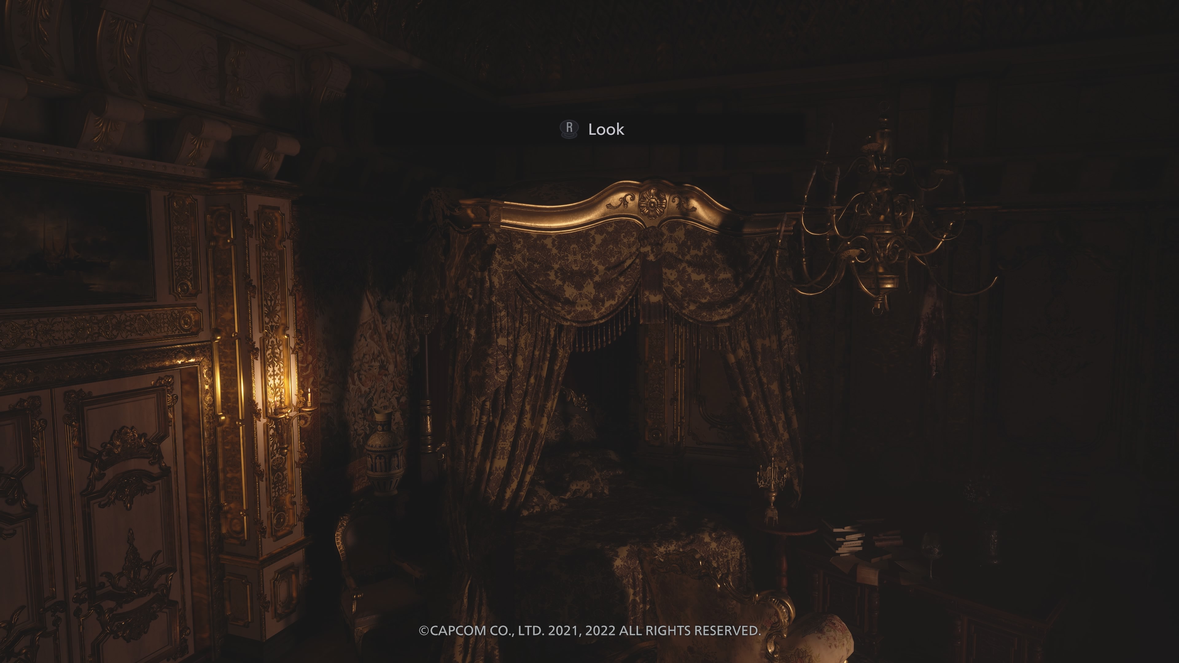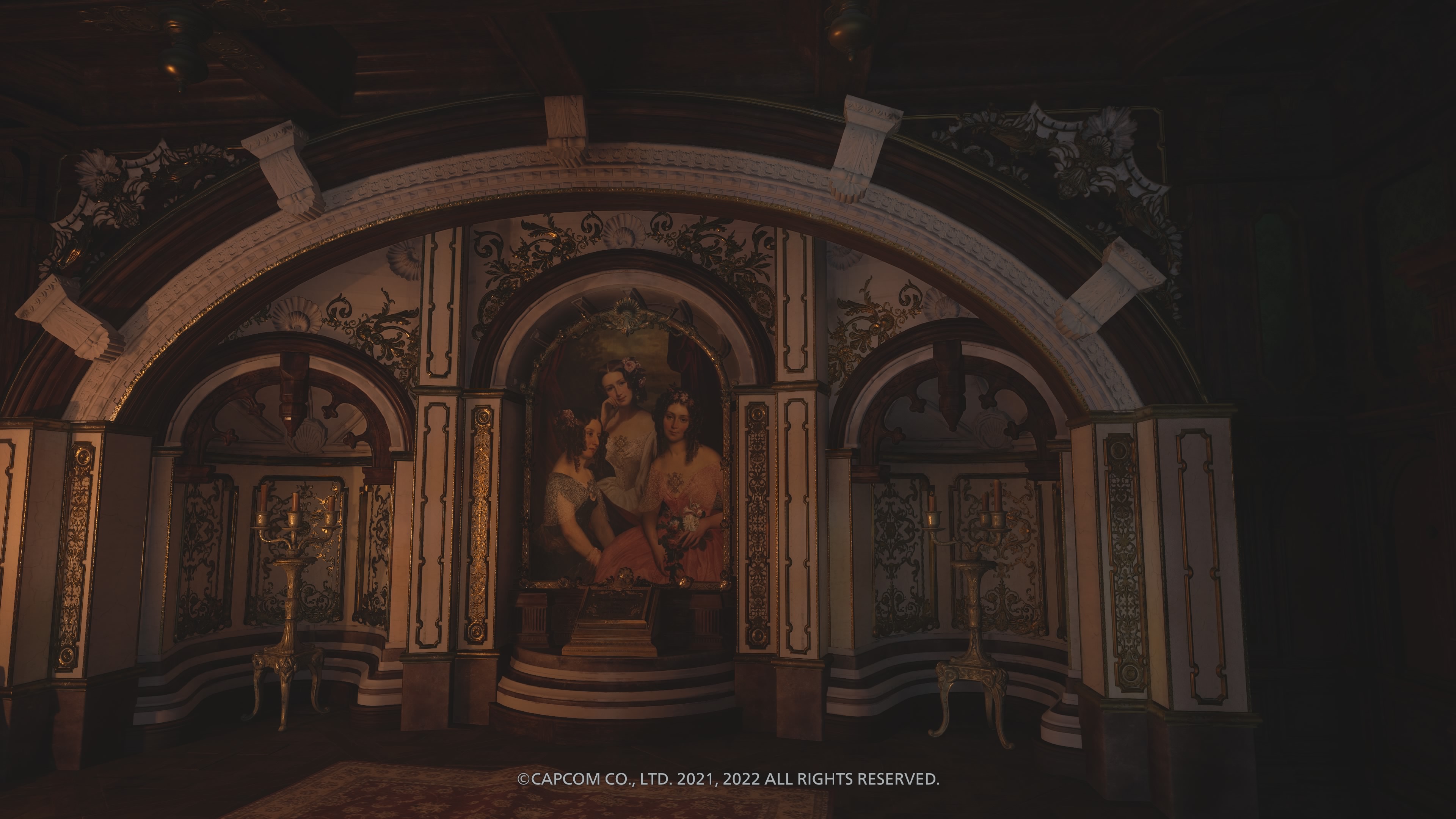 Zamek Lady Dimitrescu (nawet nie będę starał się ukryć, że jest jednym z bossów, bo chyba każdy widział tony memów, które wylały się z internetu po tym jak gigantyczna pani wampir pojawiła się, a Tomek bez pytania wybrał grafikę do tego artu) jest pięknym jasnym zamkiem, który przypomina europejskie średniowieczne zamki. Zapierająca dech w piersi architektura i piękne wykończenie wnętrz z dużą ilością detali, własną winiarnią, biblioteką, jadalnią, garderobą i … dużymi, jasnymi oknami 🙂