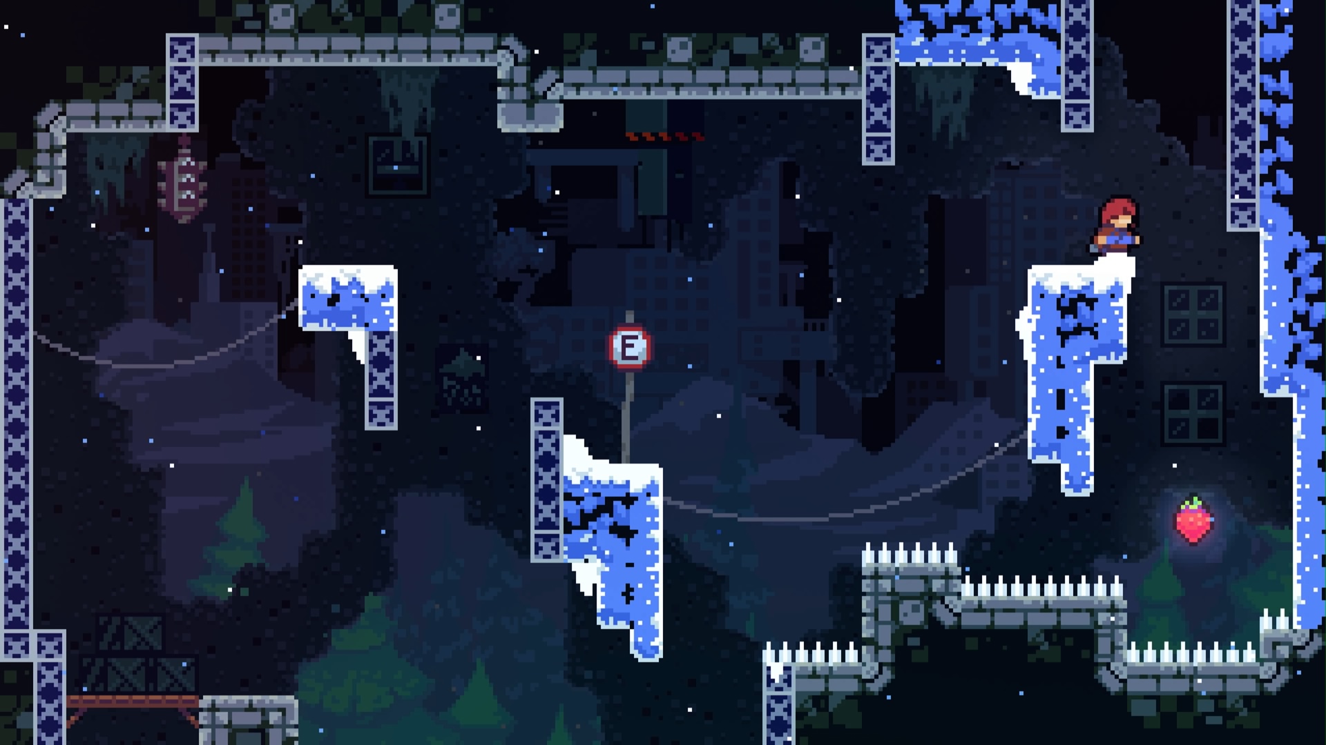 Produkcja studia Extremely OK Games (wcześniej Maddy Makes Games) to platformówka 2D, wykonana w bardzo ładnym pixel-artcie i fenomenalnej muzyce, której kompozytorką jest Lena Raine. Soundtrack pełen synthów, elektroniki i 8-bitowych brzmień, ale klimatycznych klawiszy, który zapewnił kompozytorce tabuny nominacji i nagród, np. nagrody IGF „Excellence in Audio”. Jak przystało grę w gatunku, najważniejszym elementem repertuaru ruchów Madeline jest skok. Ten wzbogaca możliwość chwytania się ścian, co możemy wykorzystywać we wspinaczce po pionowych powierzchniach – musimy tylko uważać na zmęczenie bohaterki, która po chwili trzymania się ścian, zacznie opadać. Szybko po rozpoczęciu gry, dziewczyna odkrywa w sobie moc wykonywania pchnięcia w powietrzu, w dowolnym kierunku, ale tylko raz na czas w powietrzu – jeśli takowy dash wykonamy, to musimy stanąć na twardym podłożu, aby wykonać go kolejny raz. To tyle. Proste mechaniki i ich świetne wykorzystanie od razu przywiodły mi na myśl Super Meat Boya. Grając Madeline czułem podobną precyzję, jak w mięsnym chłopcu. O nudzie jednak nie ma mowy, albowiem całość rozgrywki w Celeste można opisać dwoma słowami: kreatywność i wyzwanie.