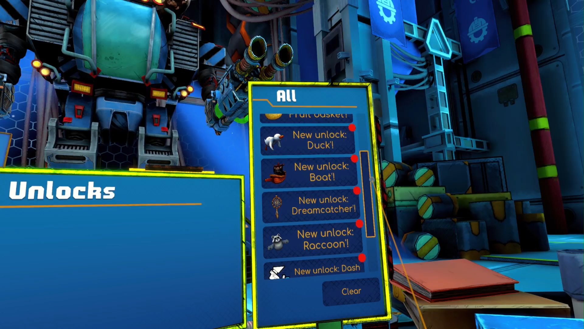 Faktem jest, że tytuł Big Shots nie jest raczej nawiązaniem do skali produkcji. Przejście gry to – w zależności o poziomy wyzwania – od trzydziestu minut do godziny. Co potem? Za zdobytą kasę, której mnożnik zależy od tego, jak wysoki numer widnieje przy wyzwaniu, kupujemy nowe bronie (granatnik i laser), permanentne ulepszenia mecha (rzadsze przegrzanie, wykonywanie uników bez ładowania, lepszy pancerz itp.), nowe umiejętności specjalne oraz popierdółki wizualne. Te ostatnie nie dość, że wykonane są naprawdę dobrze i nałożone na naszego mecha, prezentują się świetnie, to jeszcze ukazują poczucie humoru studia. Mecha możemy pokolorować, założyć mu coś na głowę, powiesić na ramionach, a nawet wsadzić dwie ozdoby do środka kokpitu – bez szopa na run nie idę. Gdyby nie brak platynowego pucharka za produkcję, to spokojnie szarpałbym w Big Shots więcej, aniżeli te dziesięć godzin, jakie poświęciłem na produkcję AlterEyes, aby zdobyć wszystko ze sklepu.