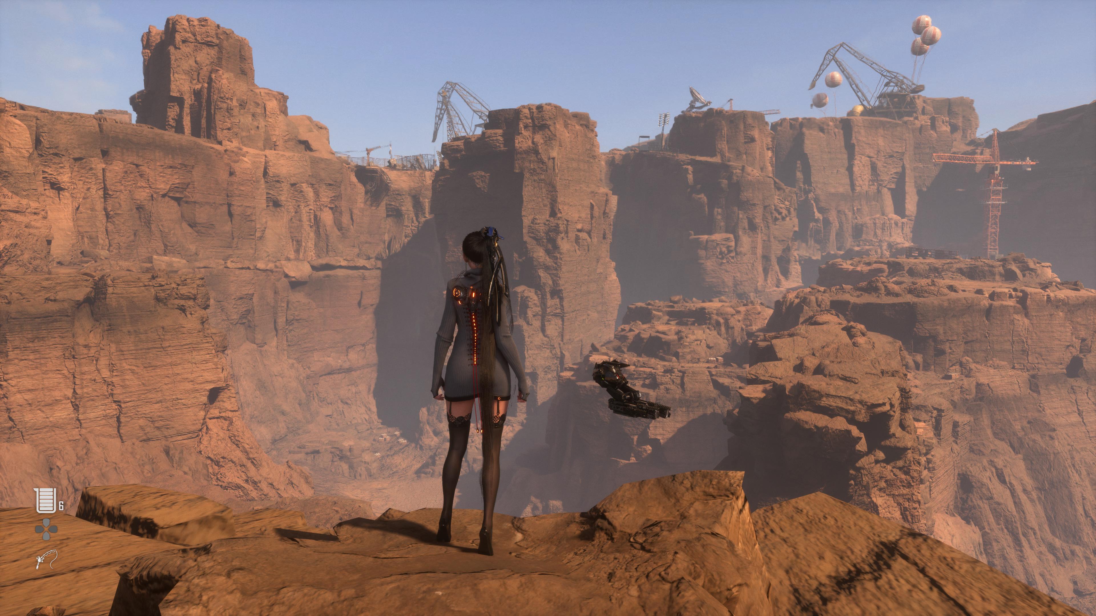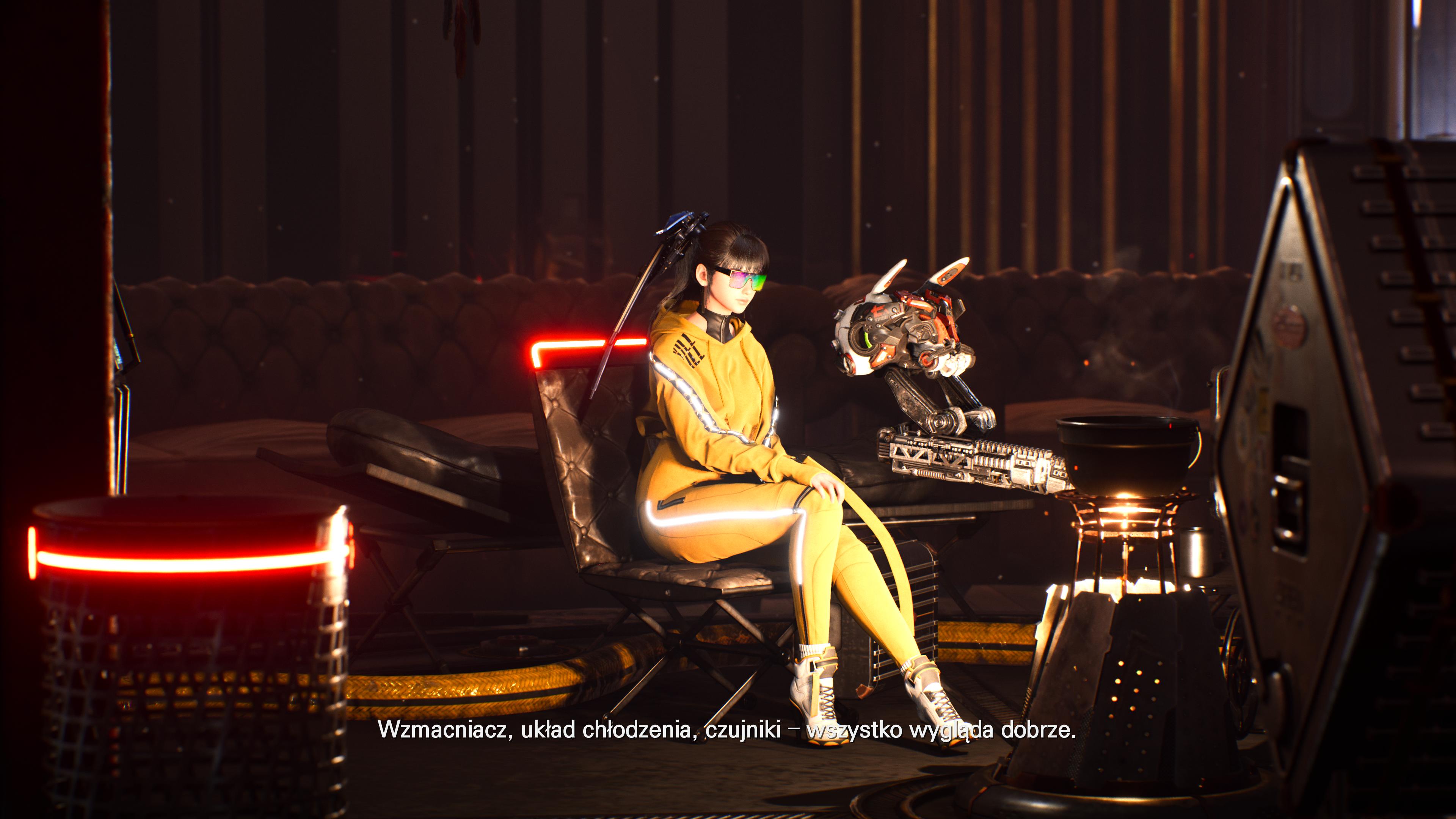 Niemniej mamy tu do czynienia, którego celem nie było prawdopodobnie wywalenie całego budżetu na grafikę. Wyraźnie widać miejsca, w których zaoszczędzono grosza, jednak zrobiono to w mądry sposób. Assety regularnie się powtarzają w budowie otoczenia na przestrzeni całej gry. Wiele postaci – zwłaszcza męskich – nosi hełmy na głowach lub maski, czym uniknięto pracy nad mimiką twarzy. Stąd, gdy słyszę, że Stellar Blade jest „piękną produkcją”, moją odpowiedzią jest „tak, ale…”. Z drugiej strony, bezapelacyjnie Stellar Blade działa fenomenalnie technicznie – to jedna z produkcji, która przelała szalę w sprawie mojego zakupu PS5 Pro. W ustawieniach gry dostępnych jest tuzin trybów graficznych, które są bossem dla nowego pudełka PlayStation. A jego ostateczna forma, to wyśrubowane sto dwadzieścia klatek z wykorzystaniem VRR i PSSR – jako pospolity użytkownik sprzętów konsolowych, byłem pod wrażeniem tego, jak płynnie gra działa przy tak okazałej grafice. Nie jestem maniakiem klatek na sekundę i zawsze powtarzałem, że trzydzieści to bardzo fajna liczba, natomiast nie można przejść obok osiągnięcia Shift Up obojętnie. Dobra robota.