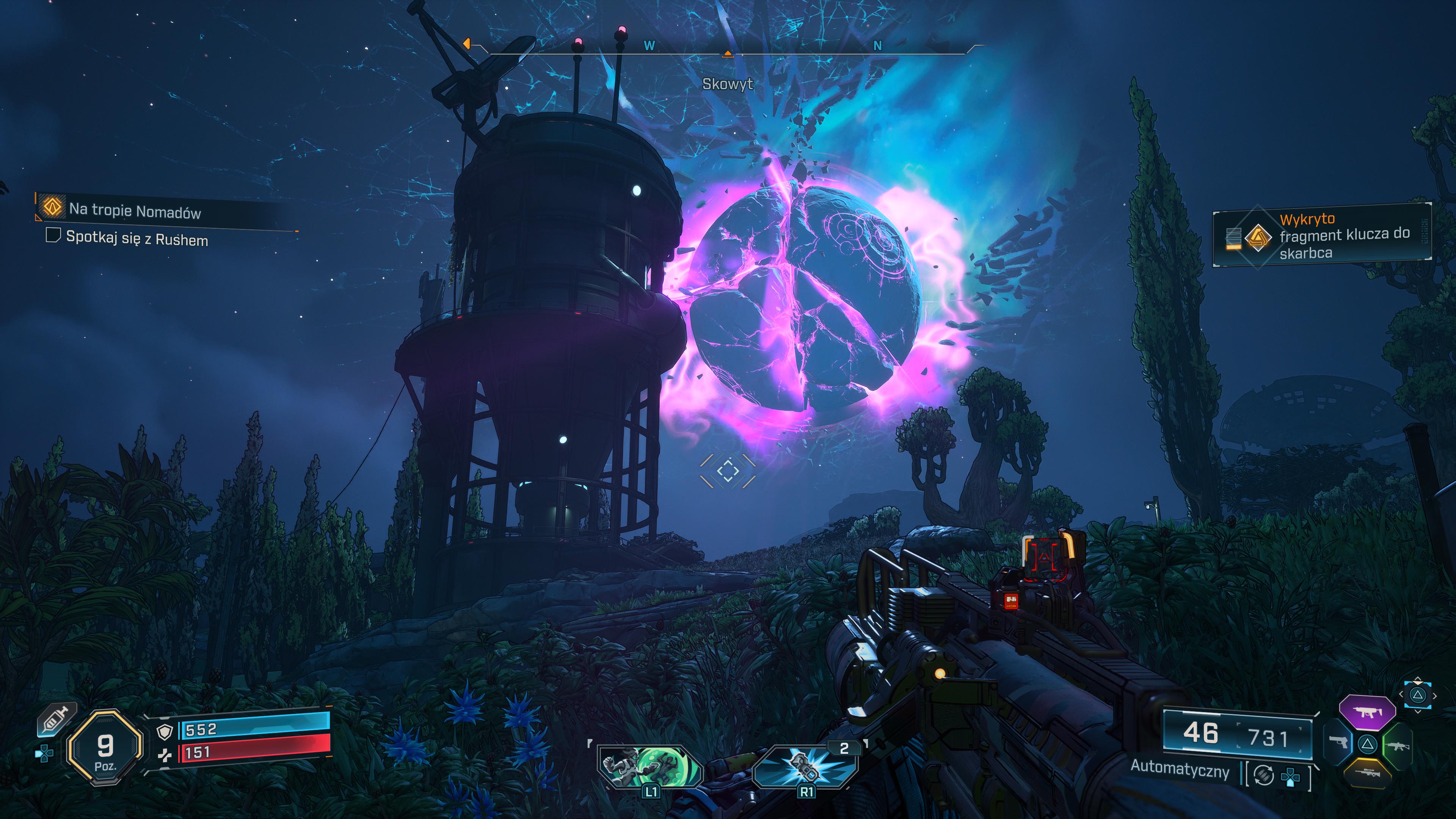 A dlaczego tak duży nacisk kładą twórcy dziś na scenariusz i dialogi? Ponieważ pod względem czystej rozgrywki niewiele się zmienił. Borderlands 4 to wciąż looter-shooter (uwielbiam to określenie), a więc „diablo ze spluwami”, jak niegdyś nazywano serię. Czwórka bohaterów o różnych zdolnościach specjalnych, udoskonalanych na trzech drzewkach rozwoju. Moim typem została Harlow i przyznam, że choć z początku nie leżała mi jej specjalna zdolność, to po dobrym zaplanowaniu tego, jak chciałbym, aby wyglądał jej build, zakochałem się jej bańce grawitacyjnej. Dodatkowo wraz z postępem w grze, bardziej i bardziej podobał mi się jej charakter i zachowanie, więc cieszę się, że to właśnie ją wybrałem na mojego Łowcę Skarbów. Innych nie sprawdziłem, więc trudno mi powiedzieć, jak fajnie się nimi gra, jednak jedno mogę zdradzić: jeśli podobnie dobrze, jak wpisy ECHO znalezione po świecie z nimi w rolach głównych, to nie ma czego się obawiać.