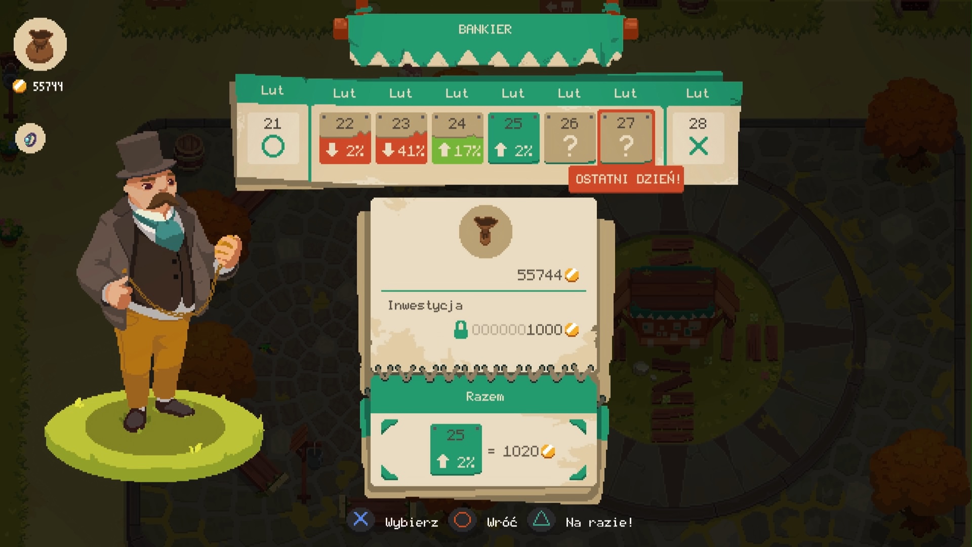Za zdobyte pieniądze ulepszamy naszą broń, zbroję, ale także sklep i całe miasto. Do naszego supersamu możemy wstawić koszyk „Wszystko za 5 złotych” lub lepsze łóżko, które zapewni nam dodatkowe punkty życia po wyspaniu się. Inwestycje w miasto to natomiast chociażby przywrócenie do działania starej kuźni, jak i otworzenie straganu z miksturami leczącymi, niezbędnymi na kolejnych poziomach lochów. Mamy tym samym ostatni element rogalikowości tego rogalika, a więc permanentne zmiany, mające na celu ułatwić nam rozgrywkę w lochach. Te są coraz trudniejsze i zostawiają dla nas cenniejsze przedmioty. Połączenie pełnych akcji starć z potworami w lochach i relaksujące życie handlowca to bardzo udane połączenie, które składa się na satysfakcjonującą równowagę doświadczeń. Jednak rozgrywka – jako taka – się nie zmienia, co pod koniec gry zaczynało mi się nudzić, aczkolwiek za to mogę obwiniać jedynie siebie.