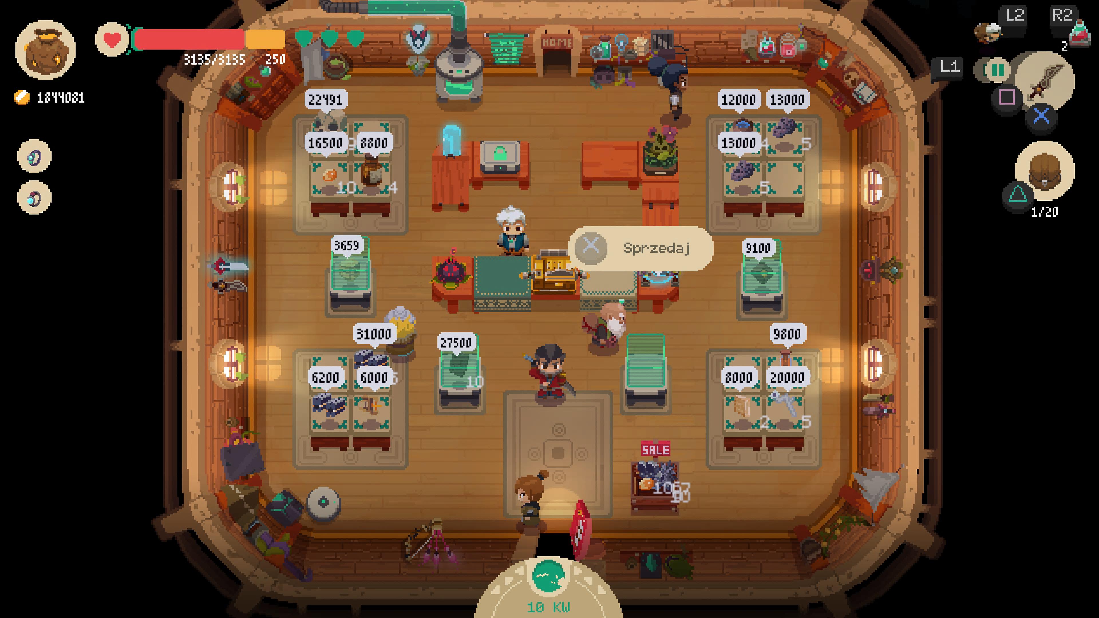 Szczególnie gdy przyjdzie nam opuszczać lochy. To możemy zrobić na kilka sposobów. Gdy punkty Willa spadną do zera, zostaje on wyrzucony z lochu, a wszystko, co nie znajdowało się w sześciu bezpiecznych miejscach plecaka, znika. Dzięki naszyjnikowi od dziadka, Will jednak może opuścić loch w dowolnym momencie i wrócić bezpiecznie do sklepu. To jednak kosztuje nieco złota, więc lepiej mieć na uwadze fakt, że im dalej w lochach jesteśmy, tym koszt powrotu staje się większy. Szybko odblokowujemy kolejny przedmiot specjalny, który pozwala nam spalać przedmioty z plecaka i zdobywać złoto – na wypadek, jeśli zabraknie nam na bezpieczne pożegnanie z wyzwaniem. Oczywiście żal żegnać się ze źródłem cennego złota i to nadaje kolejnej warstwy emocji kolejnym biegom przez podziemia. A po powrocie z lochów można się w końcu zrelaksować – nic z tych rzeczy! Kurz z lochów trzeba szybko otrzepać i wejść za ladę.